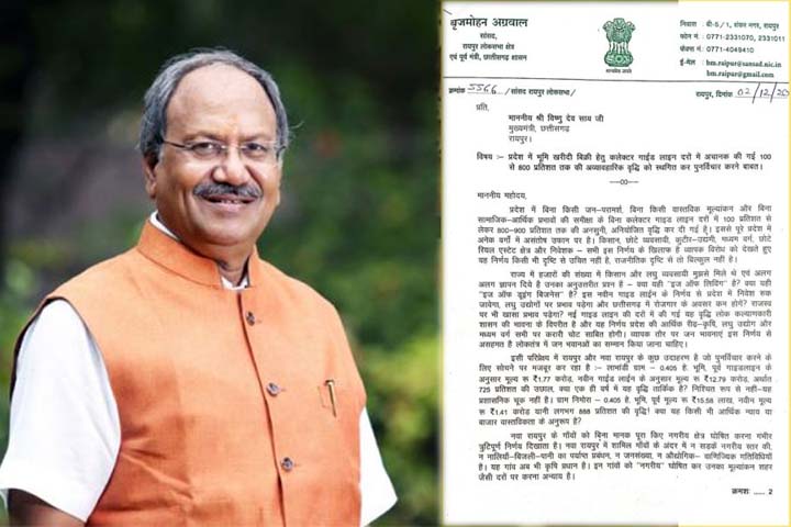 जमीन की नई गाइड लाइन को लेकर सांसद बृजमोहन ने मुख्यमंत्री साय को लिखा पत्र, स्थगित कर...