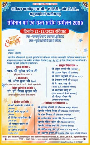 भूपेश बघेल होंगे कार्यक्रम के मुख्य अतिथि दुर्ग- भारतीय संविधान के 75 वर्ष पूर्ण होने पर अखिल...