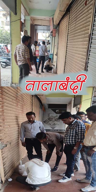 प्रीमियम की राशि का भुगतान नही करने पर आयुक्त डॉ. चतुर्वेदी के निर्देश पर राजस्व निरीक्षक हितेश ठाकुर, राजस्व उप निरीक्षक रविन्द्र ठाकुर व द्रोपती हरिहारनो व राजकुमार बंजारे, लेखापाल पंकज साहू एवं निगम की टीम सुभाष द्वार (दिल्ली दरवाजा) के पास भूतल की दुकान क्रं. 4 जो रामनुज वर्मा को आबंटित है, इसी प्रकार दुकान क्रं. 5 लोकेश पंचभाई तथा दुकान क्रं. 6 आबंटित ललिता जैन द्वारा प्रीमियम की राशि जमा नहीं करने पर उपरोक्त तीनों दुकान में तालाबंदी कर सील की गयी.
