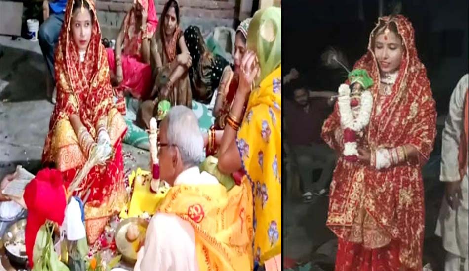 खूबसूरती से शादी का मंडप बनाया गया था. बाद में बारात भगवान कृष्ण की मूर्ति को लेकर विवाह स्थल पर पहुंची, जहां बारातियों ने डीजे की धुन पर डांस किया. अतिथियों को आमंत्रित किया गया और उनके लिए भोजन, पेय और संगीत की भी व्यवस्था की गई. रात भर चली शादी के बाद दुल्हन कृष्ण की मूर्ति को लेकर जिले के सुखचैनपुर इलाके में अपने रिश्तेदार के यहां चली गई. बाद में, वह भगवान कृष्ण की मूर्ति को गोद में लेकर अपने मायके लौट आई.