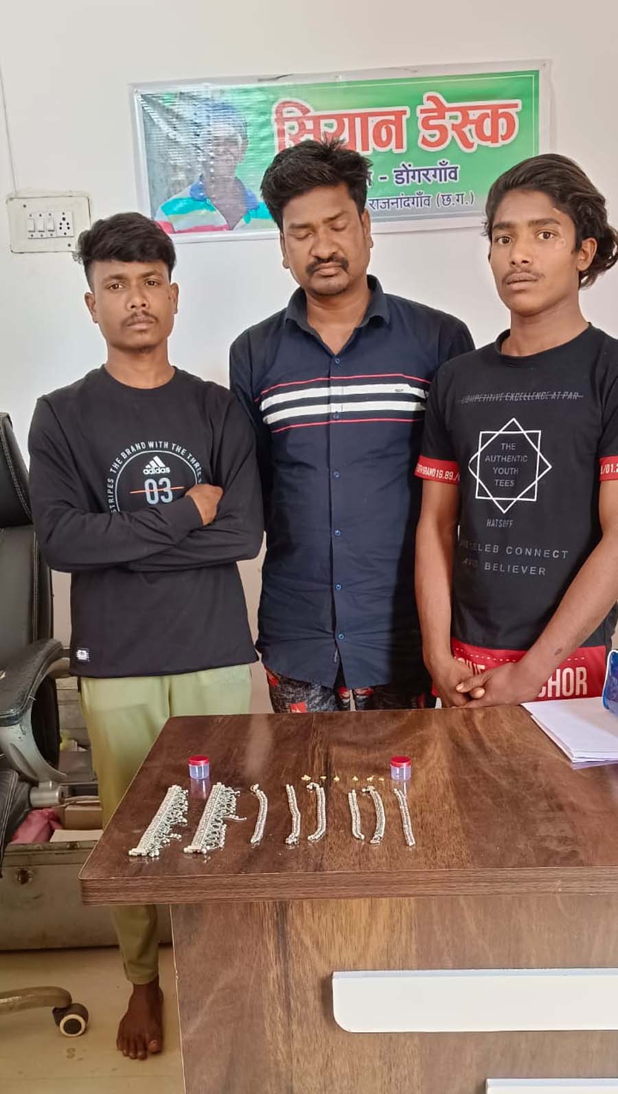 राहुल गौतम राजनांदगांव- अज्ञात चोरो ने रात्री में घर में चोरी को अंजाम देने वाले तीन आरोपी को पुलिस ने गिरफ्तार किया है. प्रार्थी पायल साहू निवासी गुंगेरीनवागांव के घर चोरों ने सोने-चाँदी जेवरात एवं नगदी रूपये को घर में घुसकर चोरी वारदात को अंजाम दिया था. डोगरगांव थाना में रिपोर्ट दर्ज कराया गया जिसे कायम कर विवेचना में लिया गया.