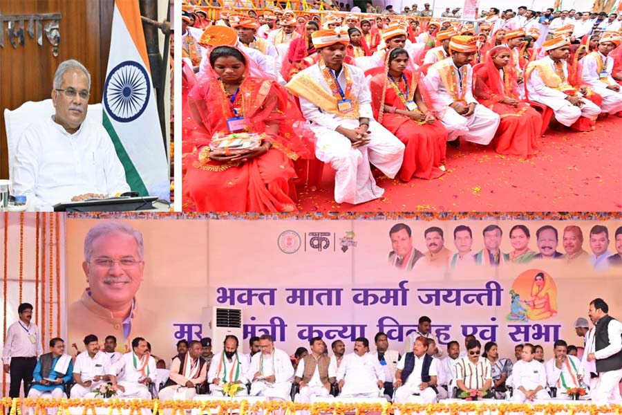 रायपुर- मुख्यमंत्री भूपेश बघेल आज कोंडागांव जिले के बांसकोट में भक्त माता कर्मा जयंती तथा मुख्यमंत्री कन्या विवाह के अवसर पर आयोजित कार्यक्रम में वर्चुअल रूप से शामिल हुए. उन्होंने साहू समाज सहित क्षेत्रवासियों को भक्त माता कर्मा जयंती की शुभकामनाएं दी और मुख्यमंत्री कन्या विवाह के अंतर्गत परिणय सूत्र में बंध रहे 101 जोड़ो को आशीर्वाद दिया. मुख्यमंत्री ने कोंडागांव जिले में 154 करोड़ के 145 विभिन्न कार्यों का वर्चुअल लोकार्पण और भूमिपूजन भी किया.