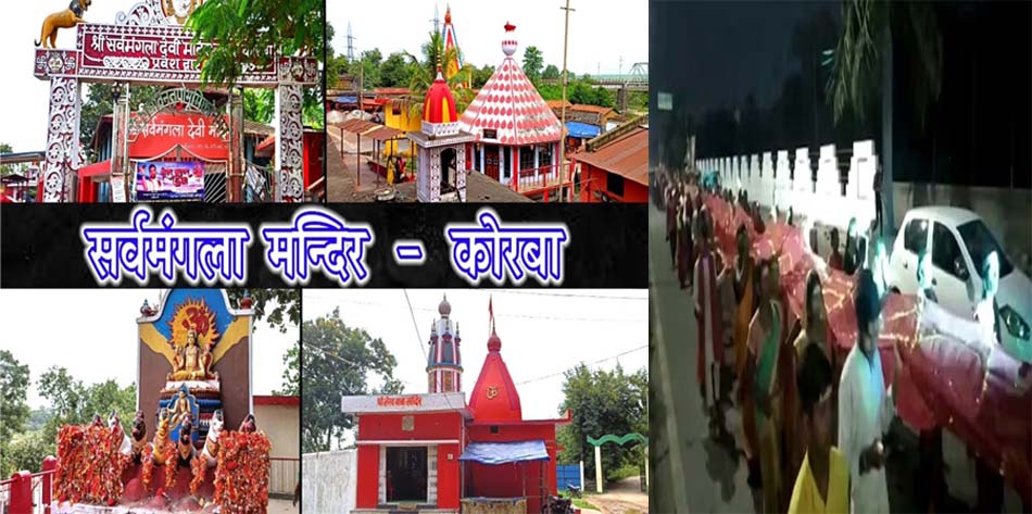 कोरबा जिले के समस्त भक्तों की खुशहाली और कोरबा जिले की विकास की मनोकामना पूर्ति के लिए कोहड़िया स्थित मेजर ध्यानचंद चौक से सर्वमंगला मंदिर तक 12 किलोमीटर पदयात्रा कर 151 मीटर लंबी चुनरी यात्रा निकाली गई. चुनरी सीएसईबी चौक से टीपी नगर, पावर हाउस रोड होते हुए सर्वमंगला मंदिर पहुंची. इस यात्रा को देखकर रास्ते में लोग भक्ति भाव से जुड़ते गए. भक्ति गीतों की धुन पर श्रद्धालुओं के पैर थिरकते रहे. शहर का भ्रमण करते हुए चुनरी मां सर्वमंगला मंदिर प्रांगण पहुंची जहां मां सर्वमंगला को चुनरी चढ़ाई गई.