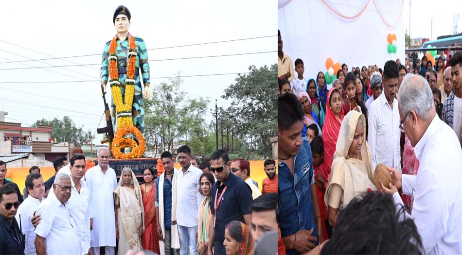 भिलाई : मुख्यमंत्री भूपेश बघेल ने वैशाली नगर विधानसभा के छावनी के तिरंगा चौक में शहीद चुम्मन यादव के मूर्ति का अनावरण किया. मुख्यमंत्री ने शहीद चुम्मन यादव की प्रतिमा पर पुष्प चक्र अर्पित कर उन्हें श्रद्धांजलि दी.