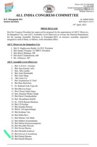 कर्नाटक विधानसभा चुनाव के लिए छग के विधायकों को जिम्मेदारी मिली है. कर्नाटक चुनाव में छत्तीसगढ़ के जिन तीन नेताओं को जिम्मेदारी मिली है. उसमें विधायक विकास उपाध्याय, विधायक शैलेश पांडे और पंकज शर्मा विधानसभा ऑब्जर्वर बनाए गए हैं.