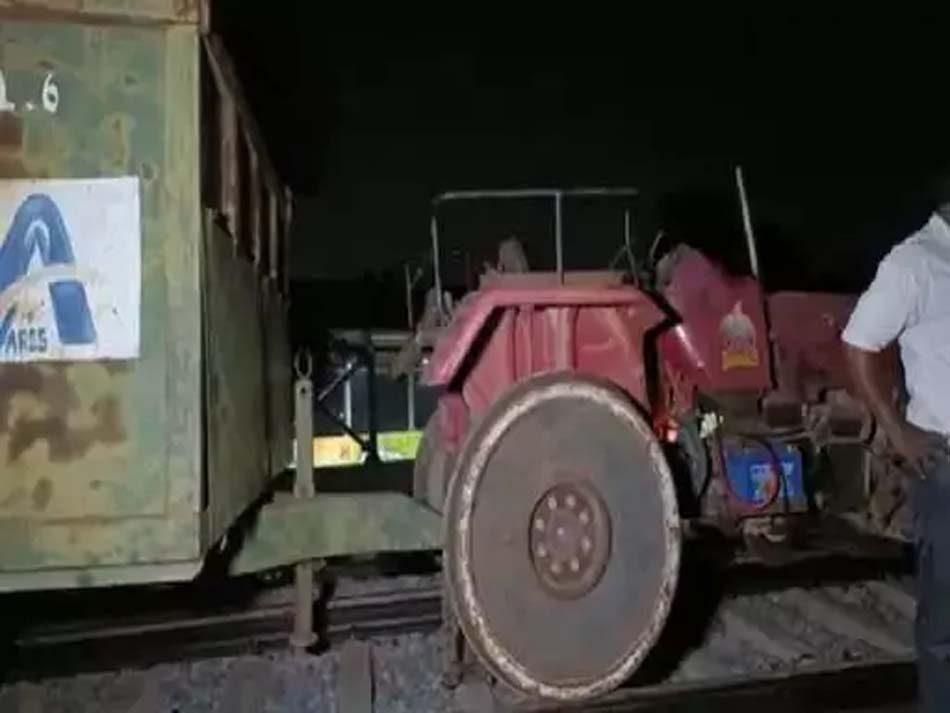 रायपुर : रायपुर में एक ट्रेन और ट्रैक्टर की टक्कर से हादसा हो गया. मालगाड़ी उसी पटरी पर आ गई जिस पटरी पर पहले से ट्रैक्टर मौजूद था. इस हादसे के बाद अब रेलवे के कर्मचारी ट्रैक्टर को हटाने का काम कर रहे हैं. यह हादसा रायपुर के फाफाडीह इलाके से गुजरने वाली वॉल्टेयर लाइन पर हुआ.
