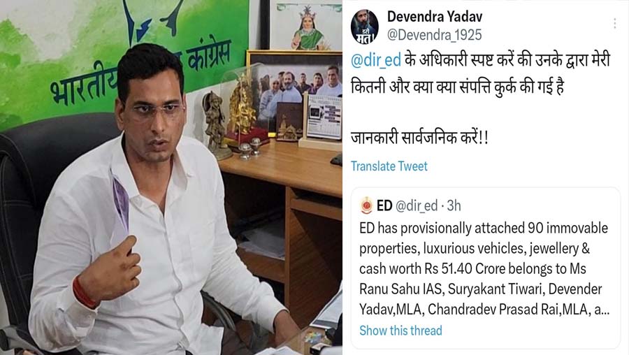 आगे विधायक देवेंद्र ने कहा कि मेरे घर में छापा और जांच की लेकिन उन्हें कुछ नहीं मिला. अब तक ईडी कुछ भी साबित नहीं कर पाया है. सूचना आज तक नहीं दिए. सबसे पहले तो ईडी यह बताएं कि ईडी के अधिकारी सही है या उनका मीडिया सेल. जब ईडी से मेरे वकील ने बात की तो ईडी के अधिकारियों ने बताया कि कुछ भी नहीं मिला है और और कोई कार्यवाही नही हुई है. जब भी कोई संपत्ति कुर्क होती है तो, PMLA 2002 के तहत सेक्शन 5 की नोटिस जारी होती है बिना नोटिस के कार्यवाही कैसे मुमकिन है ईडी की ही मीडिया सेल अलग ही बात कर रही है.