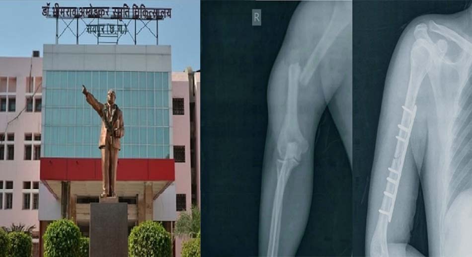 रायपुर : डॉ. भीमराव अम्बेडकर स्मृति चिकित्सालय के डॉक्टरों ने एक बार अपने इलाज का लोहा मनवाया है. डॉक्टर्स की टीम ने एक युवक का ऑपरेशन कर उसका हाथ कटने से बचा लिया. इतना ही नहीं आयुष्मान योजना से मरीज का निशुल्क इलाज कर उसे अपंग होने से बचा लिया गया. विभाग के डॉक्टरों के मेहनत, परिश्रम और लगन से मरीज के हाथ का टूटा हुआ हिस्सा जुड़ गया. युवक का रायपुर में बाइक से दुर्घटना हुआ था. इससे उसके दाहिने भुजा की हड्डी बीचो-बीच से टूट गई थी. हड्डी टूटने की वजह से भुजा की मोटी नस ब्रेकियल आर्टरी भी कट गई थी. हड्डी टूटने के साथ ही नस भी कट गया था. इससे युवक का हाथ खराब हो सकता था. बताया जाता है कि दुर्घटना के चंद घंटे बाद हाथ पूरी तरह से ठंडा पड़ गया था. हालांकि समय रहते इलाज कर उसे बचा लिया गया.
