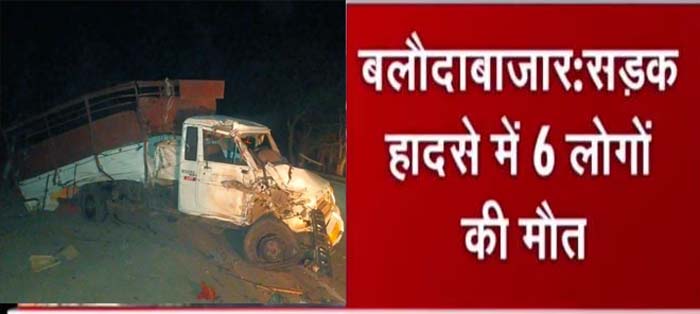 रायपुर- बलौदा बाजार जिले में पारिवारिक कार्यक्रम से लौटते समय हुए भीषण सड़क हादसे में एक ही परिवार के 6 लोगों की मौत हो गई. हादसे में तीन लोग घायल हो गए जिन्हें इलाज के लिए अस्पताल में भर्ती कराया गया है. जानकारी के मुताबिक ये हादसा खर्रा थाना इलाके में उस वक्त हुआ जब परिवार के लोग एक पारिवारिक कार्यक्रम में शामिल होकर पिकअप से वापस घर लौट रहे थे. तभी अचानक सामने से आ रहे ट्रक से पिकअप की टक्कर हो गई. घटना के बाद मौके पर हाहाकार मच गया. मौके पर मौजूद स्थानीय लोग इकठ्ठा हो गए.