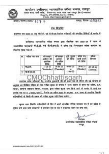 रायपुर- छत्तीसगढ़ व्यावसायिक परीक्षा मंडल द्वारा शैक्षणिक सत्र 2023-24 में राज्य के व्यावसायिक पाठ्यक्रमों पी.ई.टी. और पी.पी.एच.टी. में प्रवेश परीक्षाओं के लिए परीक्षा कार्यक्रम निर्धारित किया है. पी.ई.टी. और पी.पी.एच.टी. में प्रवेश हेतु परीक्षा 25 जून को होगी. ऑनलाईन आवेदन 17 मई से 8 जून तक लिए जाएंगे. त्रुटि सुधार की तिथि 9 जून से 11 जून तक निर्धारित की गई है. प्रवेश पत्र 19 जून को जारी किए जाएंगे.