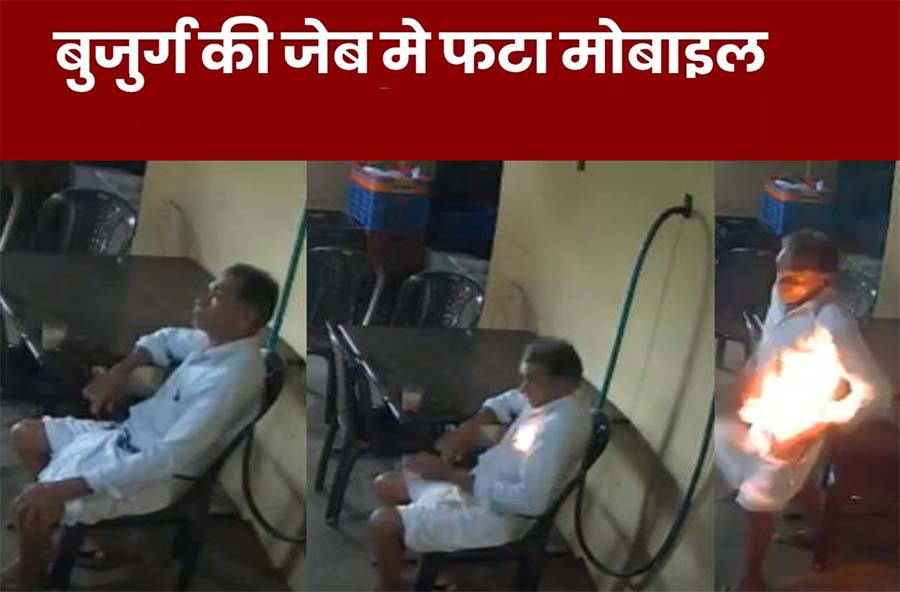 वीडियो में देखा जा सकता है कि मोबाइल फोन के फटने के तुरंत बाद बुजुर्ग उछलता है और अपने चाय के गिलास को एक तरफ रख कर मोबाइल फोन को जेब से निकालने की कोशिश करता है और इस दौरान फोन नीचे फर्श पर गिरने से वह झुलसने से बच जाता है.