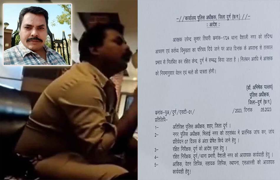 भिलाई : वैशाली नगर थाना में पदस्थ आरक्षक उपेंद्र कुमार तिवारी को दुर्ग पुलिस कप्तान आईपीएस डॉ अभिषेक पल्लव ने सस्पेंड कर दिया है. मिली जानकारी के अनुसार आरक्षक उपेन्द्र कुमार तिवारी कमांक – 1724 थाना वैशाली नगर को संदिग्ध आचरण एवं कर्तव्य विमुखता का परिचय दिये जाने पर उसके खिलाफ निलंबन की कार्यवाही की गई है.