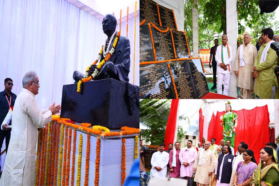 रायपुर- मुख्यमंत्री भूपेश बघेल ने आज राष्ट्रीय रामायण महोत्सव में शामिल होने के पूर्व कलेक्टर कार्यालय परिसर रायगढ़ में राष्ट्रपिता महात्मा गांधी जी की प्रतिमा में पुष्पांजलि अर्पित करते हुए नमन किया. उन्होंने यहां स्थापित छत्तीसगढ़ महतारी की प्रतिमा का अनावरण किया, साथ ही रीपा के कार्यों का अवलोकन कर इससे जुड़े समूहों के कार्यों को सराहा.