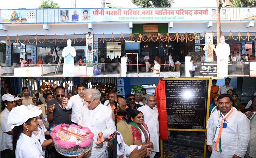 भूपेश बघेल ने 53 लाख 76 हजार रूपए की लागत से नव निर्मित 02 पौनी पसारी परिसर का किया लोकार्पण