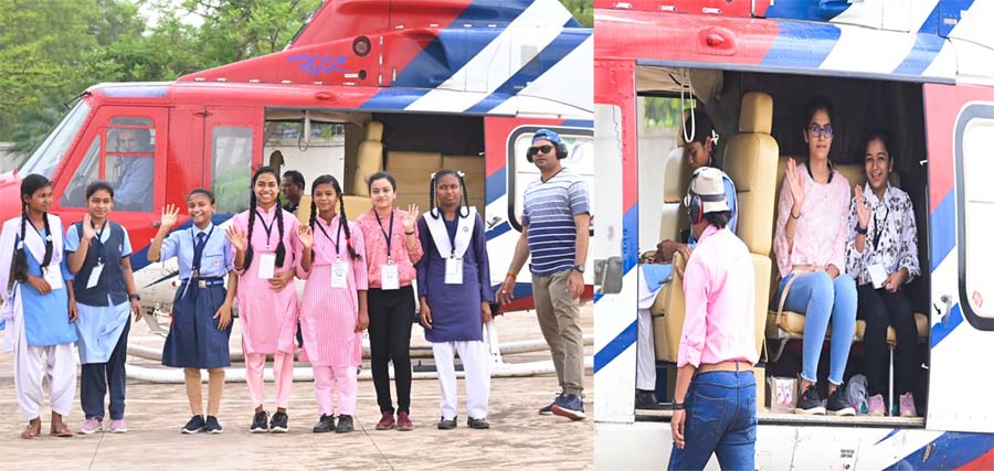 विशेष पिछड़ी जनजाति के 10 विद्यार्थियों ने लिया हेलीकॉप्टर की जॉयराइड का आनंद