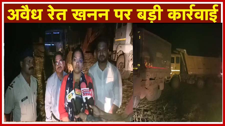 अवैध रेत खनन के मामले में देर रात दुर्ग जिला प्रशासन ने बड़ी कार्रवाई की हैं. दुर्ग तहसीलदार ने देर रात रेत माफियाओं के खिलाफ ताबड़तोड़ छापेमार कार्रवाई कर अवैध रेत खनन को बंद कराया और 2 चेन माउंटेन समेत 12 हाइवा को जप्त किया है. देर रात अवैध रेत खनन में जेवरा सिरसा चौकी क्षेत्र का मामला पुलिस बल मौके पर तैनात रहा दबिश से घबराये माफिया गाड़ियाँ छोड़ वहां से हुए भाग गए. मामला जिला मुख्यालय से लगे ग्राम सिरसा क्षेत्र का है जहा रेत का उत्खनन रात के अंधेरे में किये जाने की सूचना राजस्व विभाग को मिल रही थी, जिसके बाद तहसीलदार ख्याती नेताम सहित नायब तहसीलदार सत्येंद्र शुक्ला ने स्वंय मौके पर पुलिस बल के साथ दबिश दी है, तहसीलदार को आते देख रेत माफिया गाड़ियों को छोड़कर मौके से फरार हो गए, देर रात करीब 4 घंटे तक चली इस कार्यवाही में 2 चेन माउंटेन समेत 12 हाइवा जप्त की गई है, फ़िलहाल पता नहीं चल पाया है कि गाड़ियां किसकी है, बहरहाल देर रात हुई इस कार्यवाही ने क्षेत्र के माफियाओं में खलबली पैदा कर दी है.