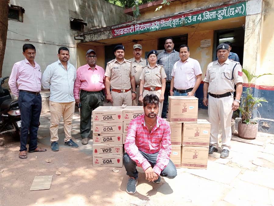 पहले प्रकरण में मठपारा, कोहका भिलाई में आरोपी शैलेन्द्र वर्मा आत्मज ढेलूराम वर्मा उम्र 24 वर्ष के कब्जे से ‘मध्यप्रदेश निर्मित‘ 10 पेटी गोवा व्हिस्की 500 नग, 5 पेटी रॉयल स्टेग व्हिस्की 60 बोतल कुल 135 बल्क लीटर देशी मदिरा मसाला जब्त कर आरोपी के विरूद्ध आबकारी अधिनियम की धारा 34(1), 34(2), 36, 59(क) के तहत प्रकरण दर्ज कर विवेचना की जाकर जेल दाखिल किया गया.