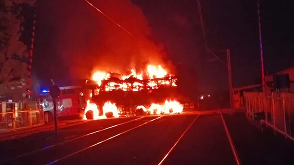 मिली जानकारी अनुसार, शुक्रवार रात करीबन 11.30 बजे एक ट्रक जिसमें टायर भरा हुआ था, जोकि ओवरलोड था. सकरेली फाटक को पार करने के दौरान OHE तार की चपेट में आ गया और ट्रक में भीषण आग लग गई. आग की लपटे तेजी में फैलने ली और पूरे ट्रक को अपनी चपेट में ले लिया. ट्रक चालक ने किसी तरह से ट्रक से कूदकर अपनी जान बचाई है. रेलवे ट्रैक के बीच आग लगने की वजह से ट्रेन सेवा बाधित रही. लोगों को भी परेशानियों का सामना करना पड़ा. वहीं नेशनल हाईवे सड़क पर 5 किलो मीटर तक वाहनों की लंबी कतार लगी हुई थी.