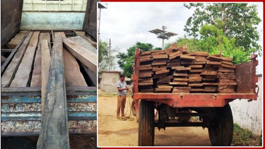 वन कर्मचारियों को संदेह होने पर उनके द्वारा वाहन रोककर सूक्ष्मता से जांच की गई. जांच करने पर पाया गया कि आरोपियों द्वारा गुमराह करने के लिए पिकअप वाहन में उपर सब्जी रखकर नीचे खुफिया कम्पार्टमेंट बनाकर फ़िल्मी तरीके से 16 नग अवैध सागौन चिरान तस्करी कर ले जाया जा रहा था. कोई वैध कागजात प्रस्तुत नहीं करने पर अवैध सागौन चिरान 0.64 घनमीटर एवं पिकअप वाहन एपी 04 व्ही 7816 के जप्ती की कार्रवाई की गई. आरोपियों से कड़ाई से पूछताछ करने पर उक्त चिरान भोपालपटनम के ग्राम लिंगापुर से लाना बताया गया. दल द्वारा इस पर त्वरित कार्यवाही करते हुए ग्राम लिंगापुर में एक जर्जर भवन से दोपहर 1 बजे 114 नग सागौन चिरान 1.92 घनमीटर जप्त किया गया. जप्त किये गये चिरान का अनुमानित मूल्य करीब एक लाख तीस हजार रूपये है.