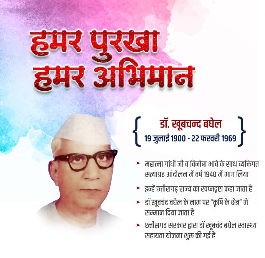 मुख्यमंत्री ने डॉ. खूबचंद बघेल की जयंती पर उनके योगदान को याद किया