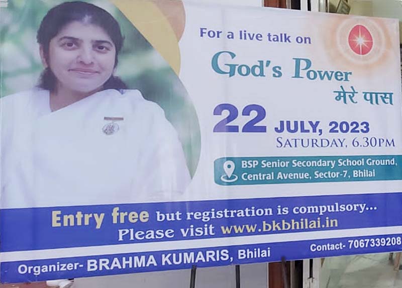 भिलाई- आध्यात्म जगत की अंतर्राष्ट्रीय प्रेरक वक्ता तथा मोटिवेशनल स्पीकर अवेकनिंग विथ ब्रह्माकुमारीज की मशहूर हस्ती नारी शक्ति सम्मान से सम्मानित एंबेसडर ऑफ वर्ल्ड साइकेट्रिस्ट एसोसिएशन ब्रह्माकुमारी शिवानी दीदी का कार्यक्रम “गॉड्स पावर मेरे पास’ शनिवार को बीएसपी सीनियर सेकेंडरी स्कूल ग्राउंड सेक्टर 7 में संध्या 6:30 बजे से रहेगा.