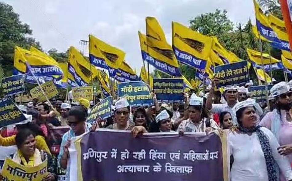 AAP प्रदेश अध्यक्ष कोमल हुपेंडी के नेतृत्व में यह प्रदर्शन किया गया. मणिपुर में राष्ट्रपति शासन लागू करने की मांग की गई. वहीं राष्ट्रपति से मणिपुर की भाजपा सरकार को बर्खास्त करने की भी मांग की गई. वहीं, दूसरी ओर मणिपुर मामले में आप के संगठन महामंत्री और राज्यसभा सांसद संदीप पाठक ने पीएम मोदी पर निशाना साधा.