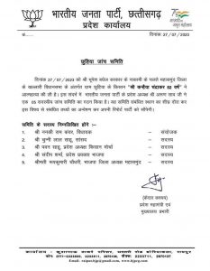 इस 5 सदस्यीय जांच समिति में विधायक ननकी राम कंवर, सांसद चुन्नी लाल साहू, प्रदेश अध्यक्ष किसान मोर्चा पवन साहू, प्रदेश प्रवक्ता भाजपा संदीप शर्मा, भाजपा जिला अध्यक्ष महासमुंद रूपकुमारी चौधरी शामिल है. यह समिति संबंधित स्थान का शीघ्र दौरा कर इस घटना से संबंधित तथ्यों का अन्वेषण कर अपनी रिपोर्ट पार्टी को सौंपेगी.