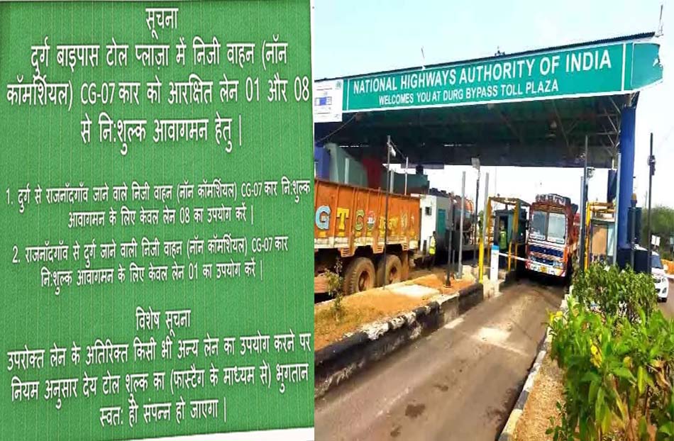 टोल प्लाजा में निजी वाहन नान कमर्शियल सीजी 07 कार को राजनांदगांव की ओर जाते समय लेन 8 से जाने पर और राजनांदगांव से दुर्ग की ओर आने पर लेन 1 पर कर नहीं देना पड़ेगा. लेकिन उपरोक्त लेन के अतिरिक्त किसी भी अन्य लेन का उपयोग करने पर नियम अनुसार देय टोल शुल्क का (फास्टैग के माध्यम से) भुगतान स्वत: संपन्न हो जाएगा. सीजी 07 वाहन चालकों को टोल प्लाजा पर टोल फ्री होने से बड़ी राहत मिली है. यह मांग एक लंबे अर्से से यहां के रहवासी वाहन चालक कर रहे थे.