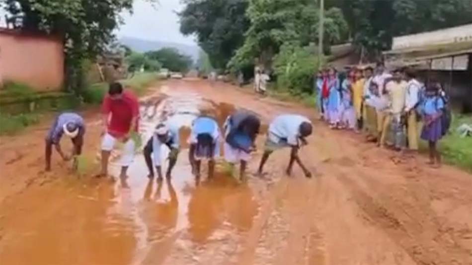 जशपुर : जिले में पंडरापाठ क्षेत्र के प्रमुख पर्यटन स्थल हर्रापाठ में मुख्य सड़क की बदहाली से लोग परेशान हैं. ऐसे में प्रशासन का ध्यान आकर्षित करने स्कूली बच्चों के साथ अभिभावकों ने सड़क के कीचड़-पानी भरे गड्ढों में धान की रोपाई कर अनोखा विरोध-प्रदर्शन किया.