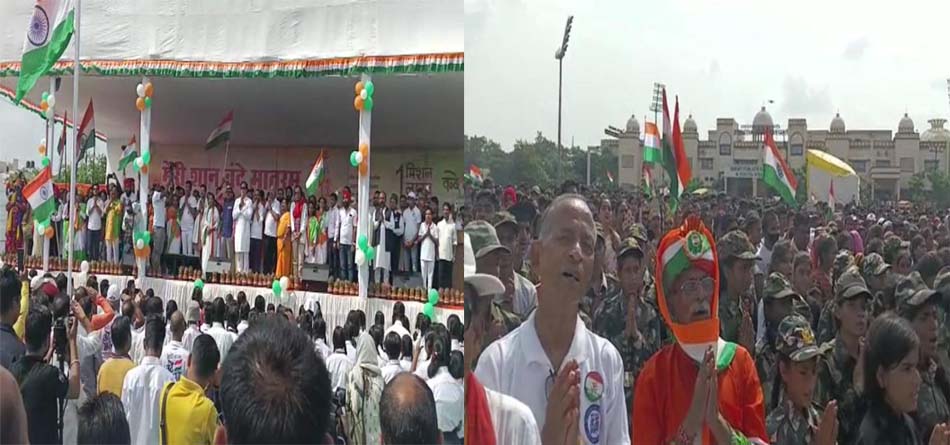 रायपुर के साइंस कॉलेज मैदान में ॐ मंडली शिवशक्ति अवतार सेवा संस्थान और वसुधैव कुटुंबकम फाउंडेशन द्वारा ‘मिशन 1 लाख वंदे मातरम’ कार्यक्रम का आयोजन किया गया. यह कार्यक्रम देशभर के 16 राज्यों में आयोजित किया गया. रायपुर को मुख्य केंद्र बनाया गया, जिसमें ऑफलाइन के साथ अन्य राज्यों से लोग ऑनलाइन के माध्यम से जुड़े. जिन्हें मिलाकर लगभग 2 लाख लोग जुड़े. बता दे कि संस्था ने 2019 में 15 किलोमीटर तक तिरंगा फैलाकर पहले भी ऐसे ही इतिहास रचा है.