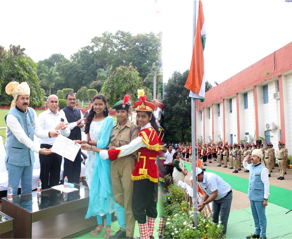 रायपुर- 77वें स्वतंत्रता दिवस के अवसर पर कुलपति डॉ. गिरीश चंदेल ने कृषि महाविद्यालय, रायपुर में विश्वविद्यालय स्तरीय स्वतंत्रता दिवस समारोह में तिरंगा फहराया एवं परेड की सलामी ली. 77वें स्वतंत्रता दिवस के अवसर पर आयोजित समारोह में महाविद्यालय के उत्कृष्ट कार्य करने वाले छात्र-छात्राओं, एन.सी.सी. के कैडेट्स एवं एन.एस.एस. के स्वयंसेवकों को बी एवं सी सर्टिफिकेट प्रदान किये. कार्यक्रम के दौरान एन.सी.सी. एवं एन.एस.एस. के कैडेट्स द्वारा देश भक्ति गीतों का प्रस्तुतिकरण दिया गया. कृषि महाविद्यालय रायपुर के छात्र-छात्राओं के बैंड द्वारा आकर्षक प्रस्तुतीकरण दिया गया.