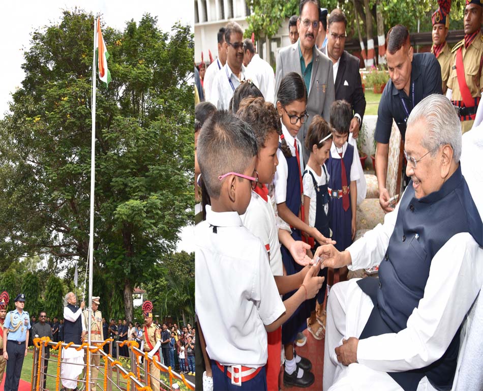 रायपुर : राज्यपाल विश्वभूषण हरिचंदन ने स्वतंत्रता दिवस के अवसर पर आज सुबह राजभवन में राष्ट्रीय ध्वज फहराया एवं सलामी ली तथा परेड का निरीक्षण किया.