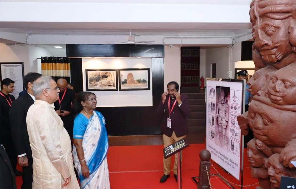राष्ट्रपति द्रौपदी मुर्मु ने महंत घासीदास संग्रहालय में बिलासपुर जिले के तालागांव में देवरानी मंदिर से प्राप्त रुद्रशिव प्रतिमा, सरगुजा के रामगढ़ में पत्थरों को काटकर बनाई गई विश्व की प्राचीनतम नाट्यशाला के रूप में मशहूर सीताबेंगरा गुफा, सिरपुर में पक्के ईंटों से निर्मित लक्ष्मण मंदिर, शिल्प और स्थापत्य में समानता के कारण छत्तीसगढ़ का खजुराहो कहे जाने वाले भोरमदेव के शिव मंदिर और बारसूर में पत्थर से निर्मित भगवान गणेश की विशाल प्रतिमा की प्रतिकृतियों और तस्वीरों का अवलोकन किया.