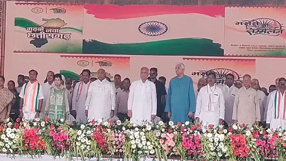 कांग्रेस के राष्ट्रीय अध्यक्ष मल्लिकार्जुन खड़गे राजनांदगांव के ग्राम ठेकवा में ‘भरोसे का सम्मेलन’ कार्यक्रम में शिरकत की. सम्मेलन में मुख्यमंत्री भूपेश बघेल, उप मुख्यमंत्री टीएस सिंहदेव, गृहमंत्री सहित बड़ी संख्या में जनप्रतिनिधि और ग्रामीण मौजूद हैं.