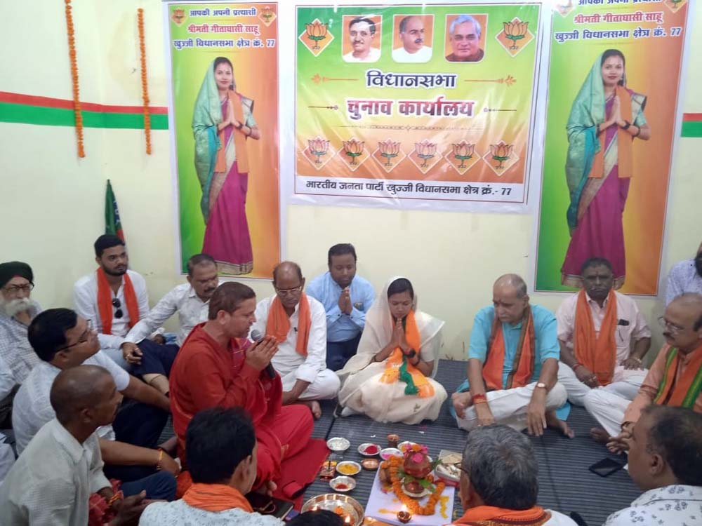 छुरिया– खुज्जी विधानसभा से भारतीय जनता पार्टी की प्रत्याशी गीताघासी साहू को घोषित हुई है. विधानसभा चुनाव के संचालन लिए विधानसभा “स्तरीय मुख्य चुनाव कार्यालय का उद्घाटन किया गया. खूबचंद पारख वरिष्ठ भाजपा नेता ने फीता काटकर भाजपा कार्यालय का उद्घाटन किया. तत्पश्चात पंडित जी द्वारा विधिवत पूजा अर्चना किया गया.