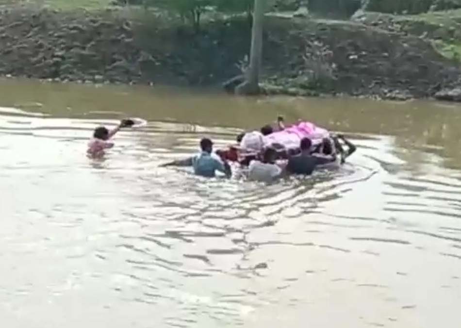बलौदाबाजार : आजादी के 75 साल बीत गए, कई सरकारें आई और गई. लेकिन कसडोल विकासखण्ड क्षेत्रान्तर्गत ग्राम खपराडीह के ग्रामीणों को मौत के बाद भी अपनी आखरी मंजिल तक पहुंचने के लिए संघर्ष करना पड़ रहा है. दरअसल, कसडोल विकासखण्ड के ग्राम खपराडीह में मुक्तिधाम जाने के लिए लोगों को नाला पार करना पड़ता है. समस्या तब और बढ़ जाती है जब नाले में पांच से छह फीट पानी भरा होता है. शव को ले जाते कुछ लोगों का एक ऐसा ही वीडियो वायरल हो रहा है. समस्या के बारे में ग्रामीण जनप्रतिनिधियों और प्रशासन को बार बार अवगत करा चुके हैं. लेकिन इनकी समस्या का हल नहीं निकल पाया है.