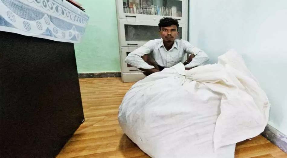 सूचना के मुताबिक एक युवक साइकिल में सफेद बड़े बोरी में कुछ सामान रखकर छत्तीसगढ़ प्रवेश करने की कोशिश कर रहा था. इस दौरान पुलिस ने शख्स को रोका और बोरी खोल कर देखा तो उसमें गांजा भरा मिला. मामले में पुलिस ने कालाहांडी जिले के खोखसरा थाना क्षेत्र के फलसापारा निवासी हरि मांझी को गिरफ्तार कर लिया है. थाना प्रभारी गौतम चंद गावड़े ने बताया कि आरोपी के पास से 58 किलो गांजा जब्त किया गया है. जिसकी कीमत 5.80 लाख है. आरोपी के खिलाफ एनडीपीएस एक्ट के तहत कार्रवाई कर जेल दाखिल किया जा रहा है.