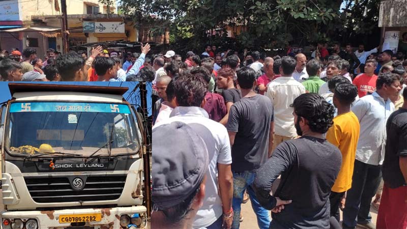 जामुल पुलिस से प्राप्त जानकारी के अनुसार आज सुबह 9:30 बजे के करीब जमुल बस्ती दुर्गा मंदिर के पास ग्राम जामुल से बोगदा पुलिया की तरफ 14 चक्का टिप्पर भारी वाहन आ रहा था. इसी दौरान दुपहिया वाहन सवार युवक ट्रक को ओवरटेक कर रहा था. इसी दौरान ट्रक टिप्पर के चक्के के नीचे आ गया. जबकि दूसरा छिटक कर दूर जा गिरा. इस हादसे में युवक की घटनास्थल पर ही मौत हो गई. मृतक युवक की उम्र 17 से 18 वर्ष के मध्य बताई गई है पुलिस ने बताया कि मृतक ग्राम खेरथा का रहने वाला है. मृतक के परिजनों को सूचना दे दी गई है. घटना के बाद आक्रोशित लोगों की स्थल पर भीड़ जमा हो गई है. घटना की सूचना मिलते ही जामुल थाना प्रभारी याकूब मेमन सहित स्टाफ स्थल पर पहुंच गया. पिछले 2 घंटे से आक्रोशित लोग सड़क पर जमे हुए हैं. ट्रक भी स्थल पर ही खड़ा हुआ है.