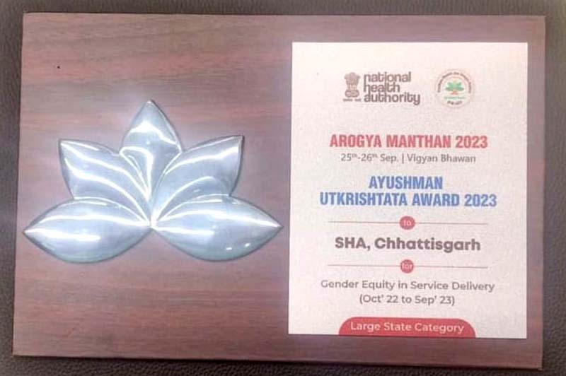 उल्लेखनीय हे कि नई दिल्ली में आयोजित आरोग्य मंथन-2023 कार्यक्रम में संचालक, स्वास्थ्य सेवाएं एवं स्टेट नोडल एजेंसी के सीईओ जयप्रकाश मौर्य ने यह पुरस्कार ग्रहण किए. केन्द्रीय स्वास्थ्य एवं परिवार कल्याण राज्य मंत्री एस.पी. सिंह बघेल ने कार्यक्रम में आयुष्मान भारत योजना के अंतर्गत उत्कृष्ट कार्य करने वाले राज्यों को सम्मानित किया. इस अवसर पर स्टेट नोडल एजेंसी के उप संचालक डॉ. खेमराज सोनवानी एवं एजेंसी के अधिकारियों के साथ एम्स रायपुर के डीन डॉ. ए.सी. अग्रवाल एवं वरिष्ठ चिकित्सक भी उपस्थित थे.