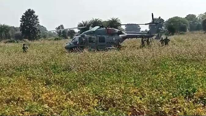जानकारी के अनुसार रविवार सुबह भोपाल के बैरसिया के डूंगरिया गांव के डेम के पास एक खेत में सेना के हेलीकॉप्टर की इमरजैंसी लैंडिंग हुई है. हेलीकॉप्टर में सेना के 6 जवान सवार थे. कुछ तकनीकी खराबी आने के कारण इमरजेंसी लैंडिंग करना बताया जा रहा है. ग्रामीणों के अनुसार हेलीकॉप्टर डैम के आसपास चक्कर लगा रहा था फिर खेत में उतरा. हेलीकॉप्टर देखने लगा ग्रामीणों का भी मजमा लग गया. सेना के जवानों ने उन्हें दूर रहने की हिदायत दी है.