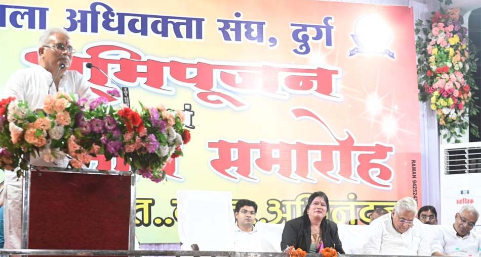 समारोह को सम्बोधित करते हुए मुख्यमंत्री भूपेश बघेल ने कहा कि शपथ ग्रहण के समय अधिवक्ता संघ द्वारा लाइब्रेरी एवं बार रूम मरम्मत की मांग की गई थी. मुझे खुशी है कि छत्तीसगढ़ में न्यायालयीन व्यवस्था से जुड़ी व्यवस्था संबंधी विभिन्न मांगे पूरी की गई है. उन्होंने देश की आजादी में अधिवक्ताओं की योगदान को उद्घृत करते हुए कहा कि समाज के विकास हेतु तब भी अधिवक्ताओं का योगदान रहा और आज भी है. आज समाज मंे सबसे ज्यादा बुद्धिजीवियों में अधिवक्ताओं को माना जाता है.