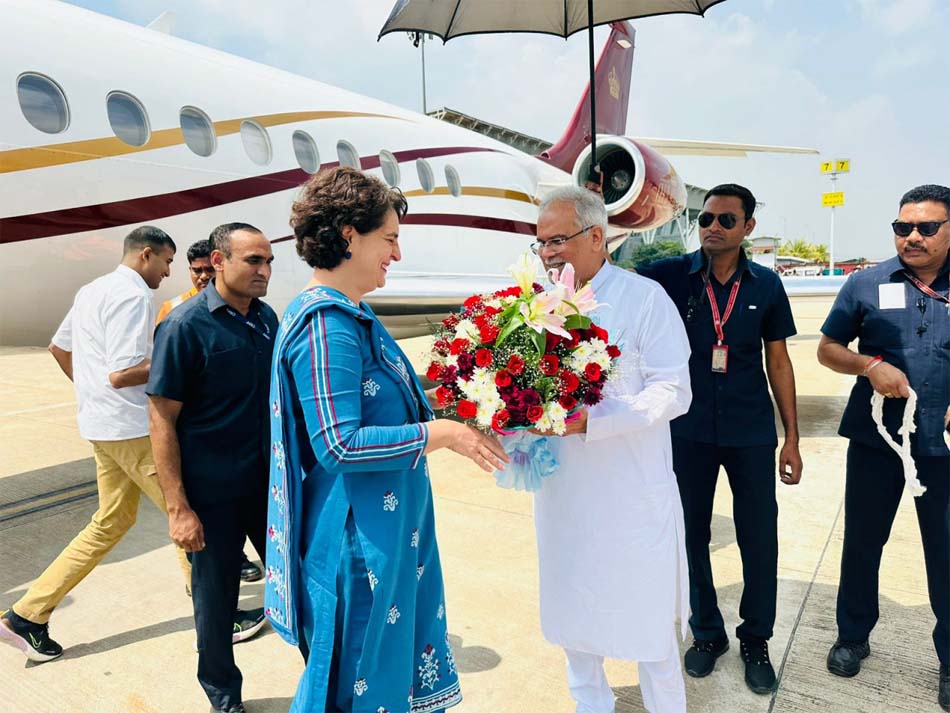 रायपुर : कांग्रेस की राष्ट्रीय महासचिव प्रियंका गांधी आज छत्तीसगढ़ की राजधानी रायपुर पहुंची. इस दौरान रायपुर के स्वामी विवेकानंद विमानतल पर प्रदेश के मुख्यमंत्री भूपेश बघेल ने उनका आत्मीय स्वागत किया.