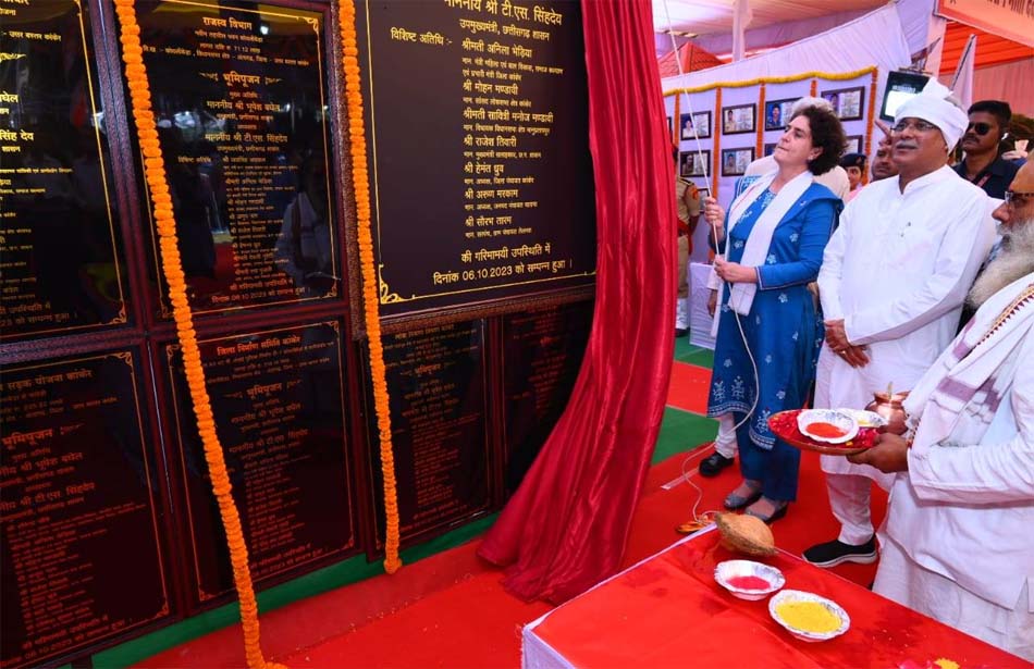 रायपुर : मुख्यमंत्री भूपेश बघेल ने आज जिला मुख्यालय कांकेर के गोविन्दपुर खेल मैदान में 06 अक्टूबर को आयोजित ‘‘नगरीय निकाय एवं पंचायती राज महासम्मेलन’’ में कांकेर जिले को 866 करोड़ रूपए के विकास कार्याें की सौगात दी. कार्यक्रम में विशिष्ट अतिथि के रूप में प्रियंका गांधी शामिल हुई.