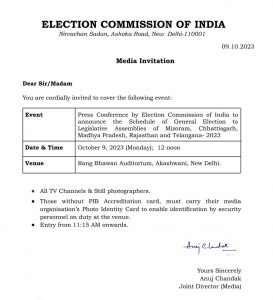 विधानसभा चुनाव को लेकर आज निर्वाचन आयोगा ने प्रेस कॉन्फ्रेंस बुलाई है. छत्तीसगढ़, राजस्थान, मध्य प्रदेश सहित पांच राज्यों के चुनाव का ऐलान होने वाला है. निर्वाचन आयोग से जुड़े अधिकारियों के पांच राज्यों के दौरे करके चुनावी तैयारियां पूरी कर ली हैं. आज 12 बजे आयोग ने प्रेस कॉन्फ्रेंस बुलाई है. संभावना है कि 10 से 15 दिसंबर की तारीख मतदान के लिए तय की जा सकती है.
