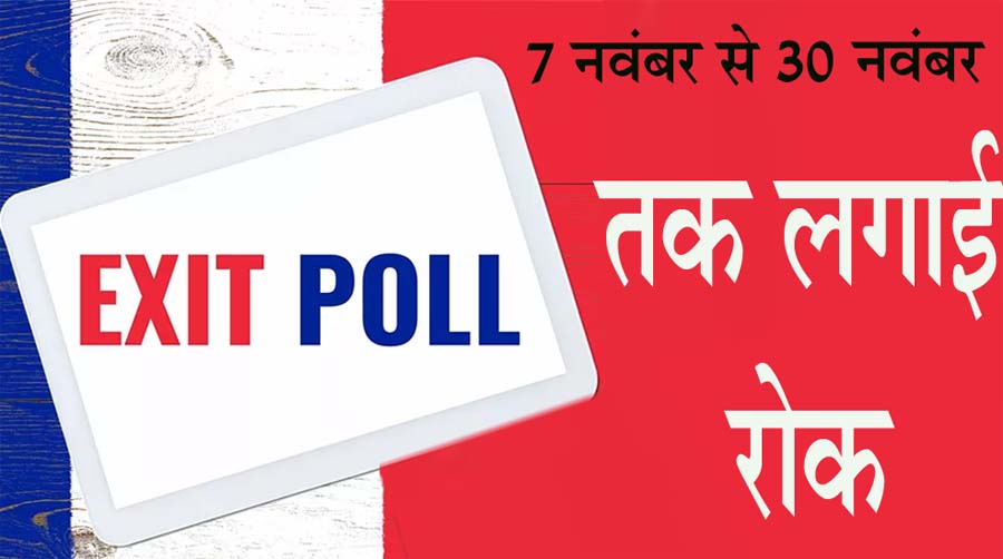 भारत निर्वाचन आयोग ने पांच राज्यों में विधानसभा आम निर्वाचन के दृष्टिगत 7 नवम्बर को सवेरे 7 बजे से 30 नवम्बर की शाम 6:30 बजे तक की अवधि को एक्जिट पोल के आयोजन और प्रसारण पर प्रतिबंधित अवधि के रूप में अधिसूचित किया है. इस अवधि में विधानसभा आम निर्वाचन के संदर्भ में किसी भी तरह के एक्जिट पोल का आयोजन करने तथा प्रिंट या इलेक्ट्रॉनिक मीडिया द्वारा इसके परिणाम के प्रकाशन या प्रचार या किसी भी अन्य तरीके से प्रचार-प्रसार पर रोक रहेगी.