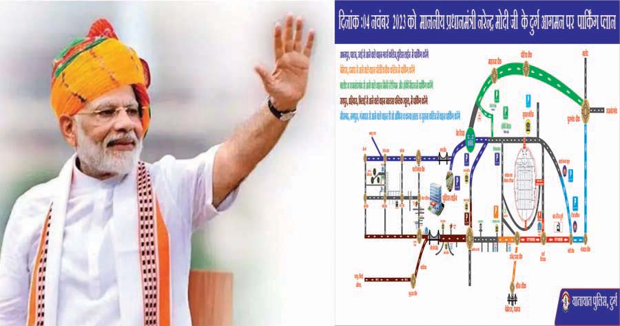 दुर्ग- प्रधानमंत्री नरेन्द्र मोदी 4 नवंबर को दुर्ग जिले के रविशंकर स्टेडियम में चुनावी सभा लेने आ रहें है. प्रधानमंत्री के आगमन के दौरान आम सभा स्थल रविशंकर स्टेडियम दुर्ग में भारी संख्या में आम नागरिको की आने की संभावना को देखते हुए दुर्ग पुलिस द्वारा वाहन पार्किग स्थल एवं कार्यक्रम से संबंधित आवश्यक निर्देश जारी किये गये है-