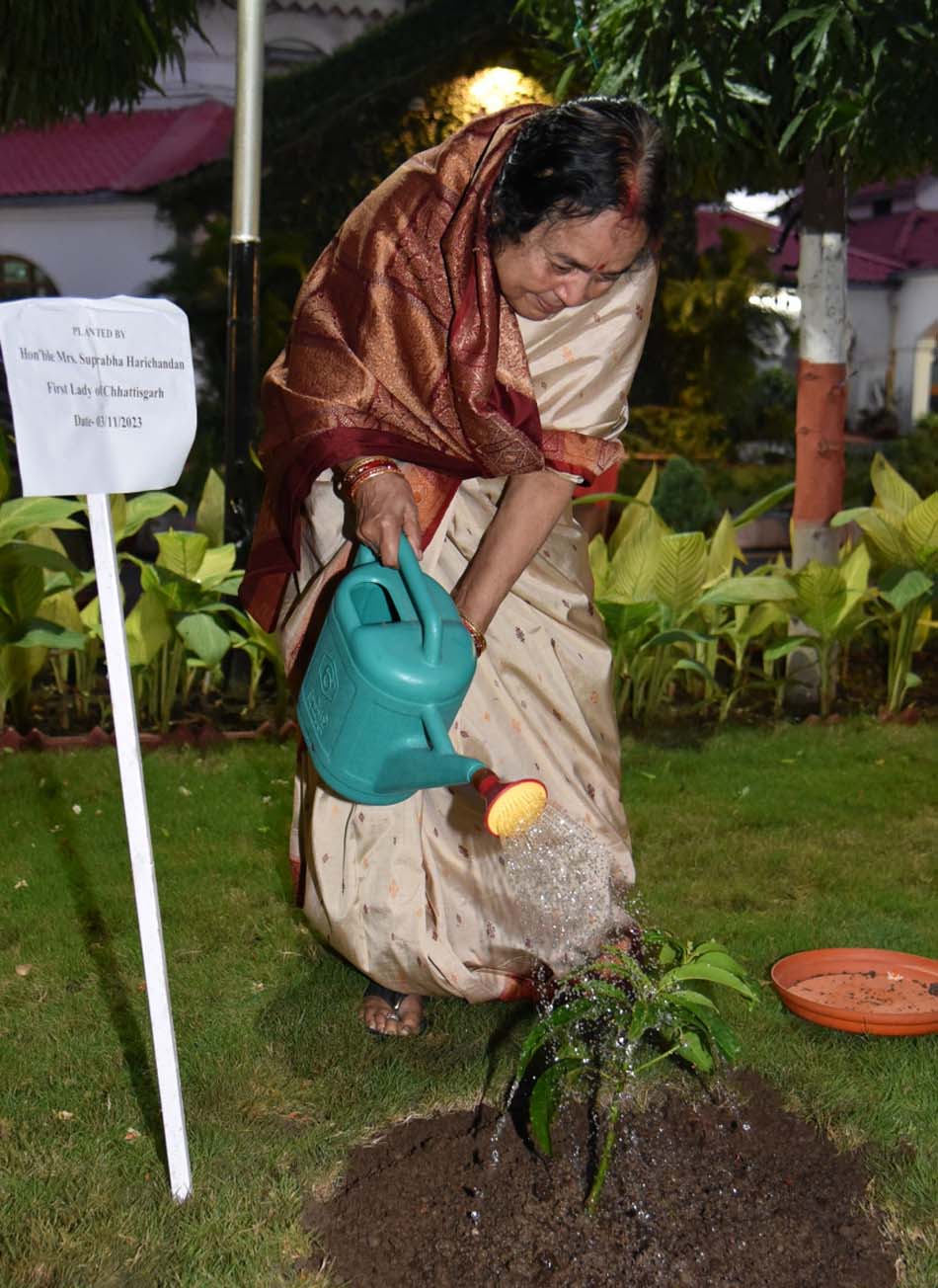 रायपुर : राज्य की प्रथम महिला सुप्रभा हरिचंदन ने राजभवन परिसर में फलदार वृक्ष आम का पौधारोपण किया उन्होंने जनमानस से अनुरोध किया है कि पर्यावरण को बढ़ावा देने के लिए समय-समय पर एवं विशिष्ट अवसरों को यादगार बनाए रखने हेतु ज्यादा से ज्यादा वृक्षारोपण करें. इस अवसर पर राजभवन के अधिकारी-कर्मचारी उपस्थित थे.