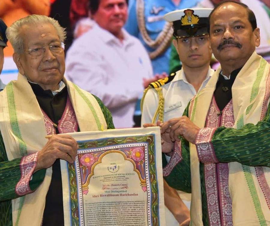 रायपुर : कलिंगा इंस्टिट्यूट ऑफ़ सोशल साइंसेस, भुवनेश्वर द्वारा छत्तीसगढ़ के राज्यपाल विश्वभूषण हरिचंदन को आज आयोजित संस्थान के दीक्षांत समारोह में उनकी उल्लेखनीय उपलब्धियों एवं समाज में उनके महत्वपूर्ण योगदान के सम्मान में, डी. लिट. (डिग्री ऑफ़ लेटर्स) की मानद उपाधि प्रदान की गई.