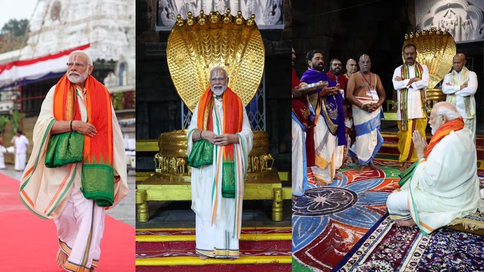 प्रधानमंत्री नरेंद्र मोदी आज सुबह तिरुपति बालाजी मंदिर पहुंचे, जहां उन्होंने भगवान वेंकटेश्वर का दर्शन किया. पीएम मोदी ने मंदिर में पूजा-अर्चना भी की, जिसकी तस्वीरें प्रधानमंत्री नरेंद्र मोदी के आधिकारिक एक्स (ट्विटर) अकाउंट से शेयर की गई हैं. पीएम मोदी ने ट्वीट कर कहा, ‘140 करोड़ भारतीयों की खुशहाली और बेहतर स्वास्थ्य की भगवान वेंकटेश्वर से कामना की.’