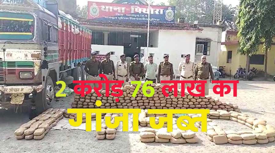 महासमुंद- जिले में नशे के विरुद्ध पुलिस बड़ी कामयाबी मिली है. पिथौरा पुलिस और सायबर सेल ने नेशनल हाईवे 53 पर भारी मात्रा में गांजे से भरे ट्रक को जब्त किया है. पुलिस ने ट्रक से 517 किलो गांजा बरामद किया है जिसकी कीमत 2 करोड़ 76 लाख रुपये आंकी गई है.